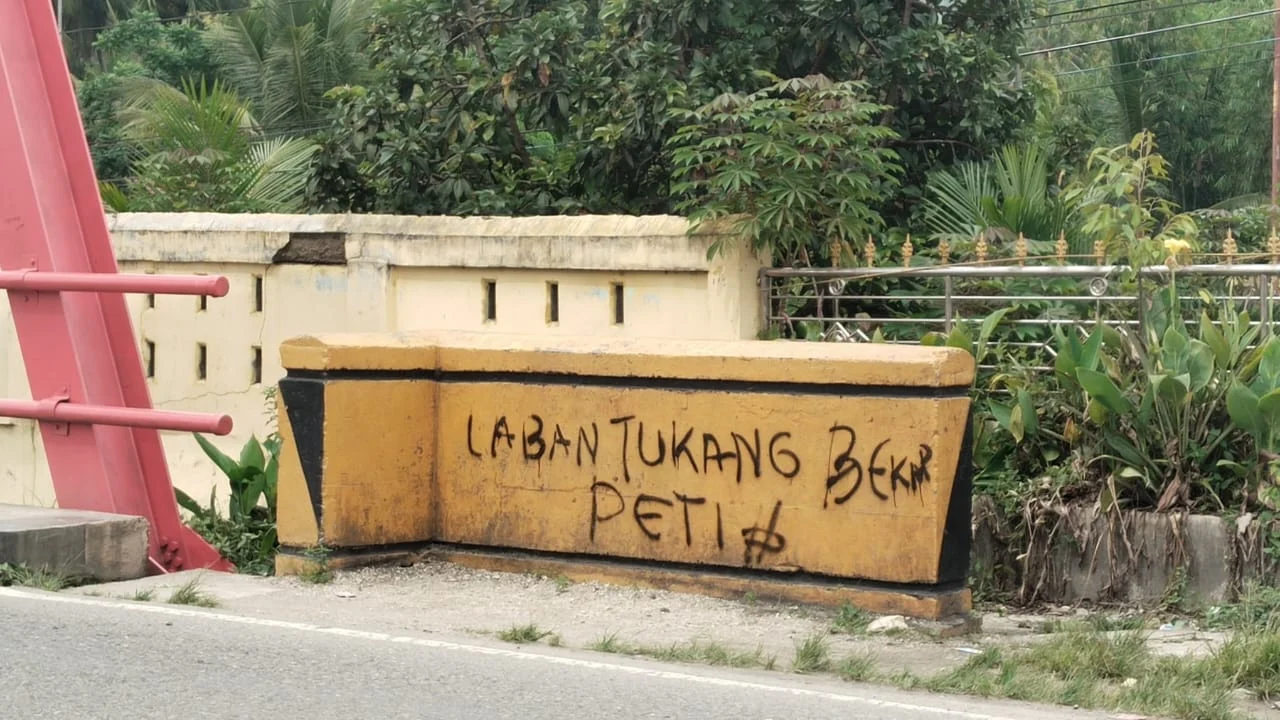 Aksi Protes PETI di Madina : Kota Panyabungan Di penuhi coretan Kritik Aparat ada Nama LABAN .