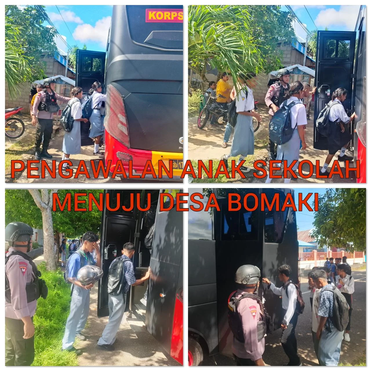 Di tengah pengamanan, aparat juga melaksanakan tugas kemanusiaan dengan mengevakuasi serta mengawal anak-anak sekolah dari Kota Saumlaki menuju Desa Bomaki guna memastikan keselamatan mereka di tengah situasi yang belum sepenuhnya stabil.