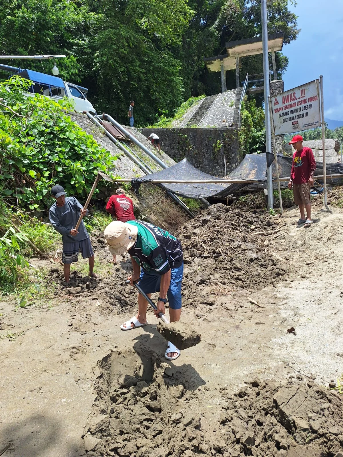 Direktur Perumdam Uwe Lino Kabupaten Donggala Imran, SH, Turun Langsung Pegang Sekop Bersihkan, Intake IKK Sirenja Akibat Banjir Sungai Sibado