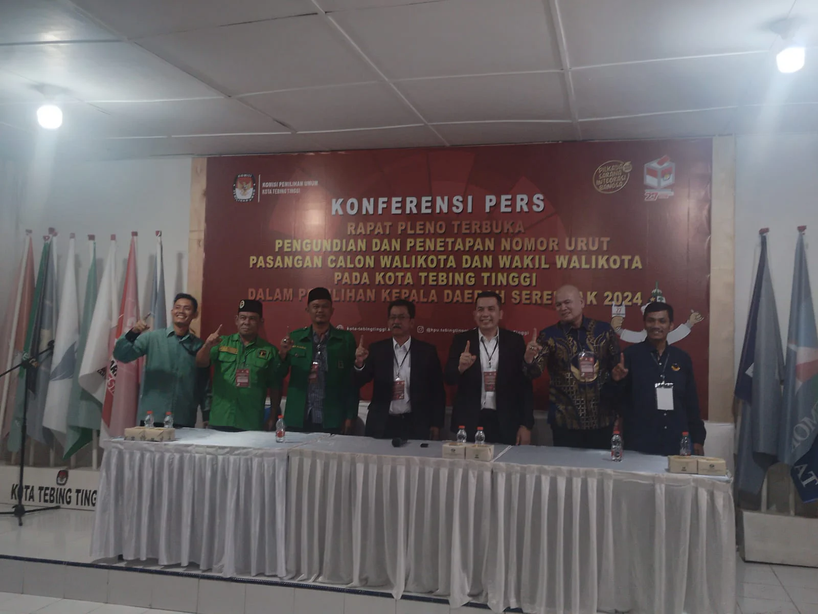 Melalui rapat pleno terbuka pengundian dan penetapan nomor urut yang digelar oleh Komisi Pemilihan Umum (KPU) Kota Tebingtinggi, Sumatera Utara, pasangan Calon Walikota dan Wakil Walikota Tebing tinggi H Oki Doni Siregar dan dr Rizky Ramadhan Hasibuan yang dijuluki pasangan ORI mendapat nomor urut 1, senin (23/09/2024).