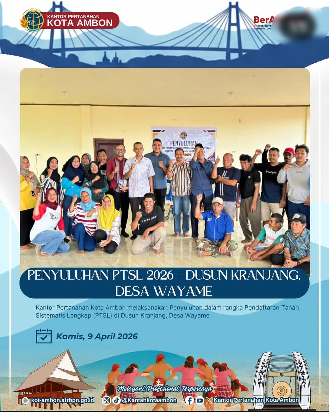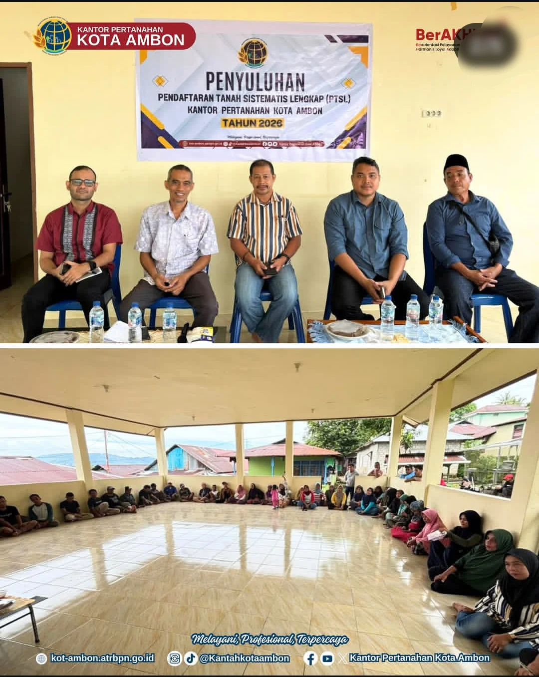Dalam pelaksanaannya, Kantor Pertanahan Kota Ambon diwakili oleh Akmal Umasugi selaku Ketua Ajudikasi PTSL Tahun 2026, didampingi Ivan Frits serta Sayid H. Assagaff.
