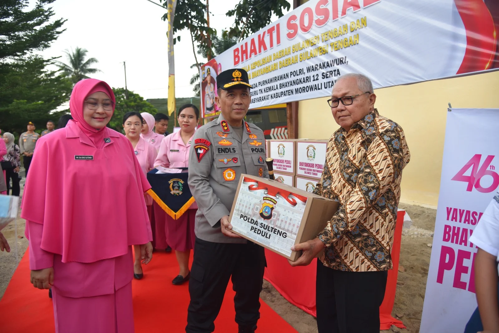 Selain itu, Kapolda bersama Ketua Bhayangkari Daerah Sulawesi Tengah juga menyerahkan bantuan sosial kepada 63 penerima yang terdiri dari purnawirawan Polri, warakawuri, guru TK Kemala Bhayangkari, anak yatim, serta masyarakat kurang mampu. Bantuan yang diberikan berupa paket sembako dan santunan sebagai bentuk kepedulian Polri terhadap masyarakat.