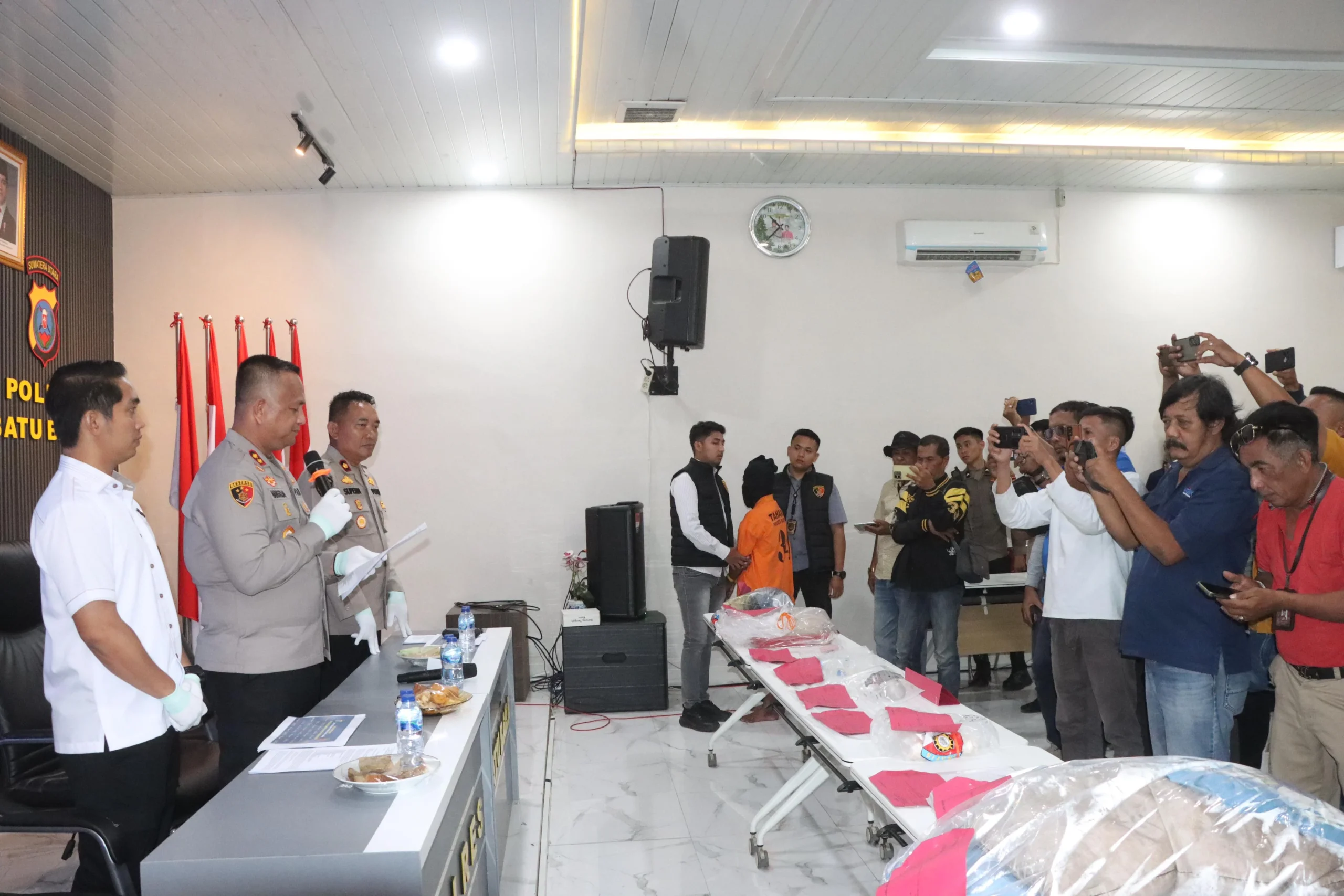 Kapolres Batu Bara Gelar Press Rilis Kasus Pembunuhan di Hotel Sorake, Tersangka Mengaku Melakukan Pembekapan dan Pencekikan