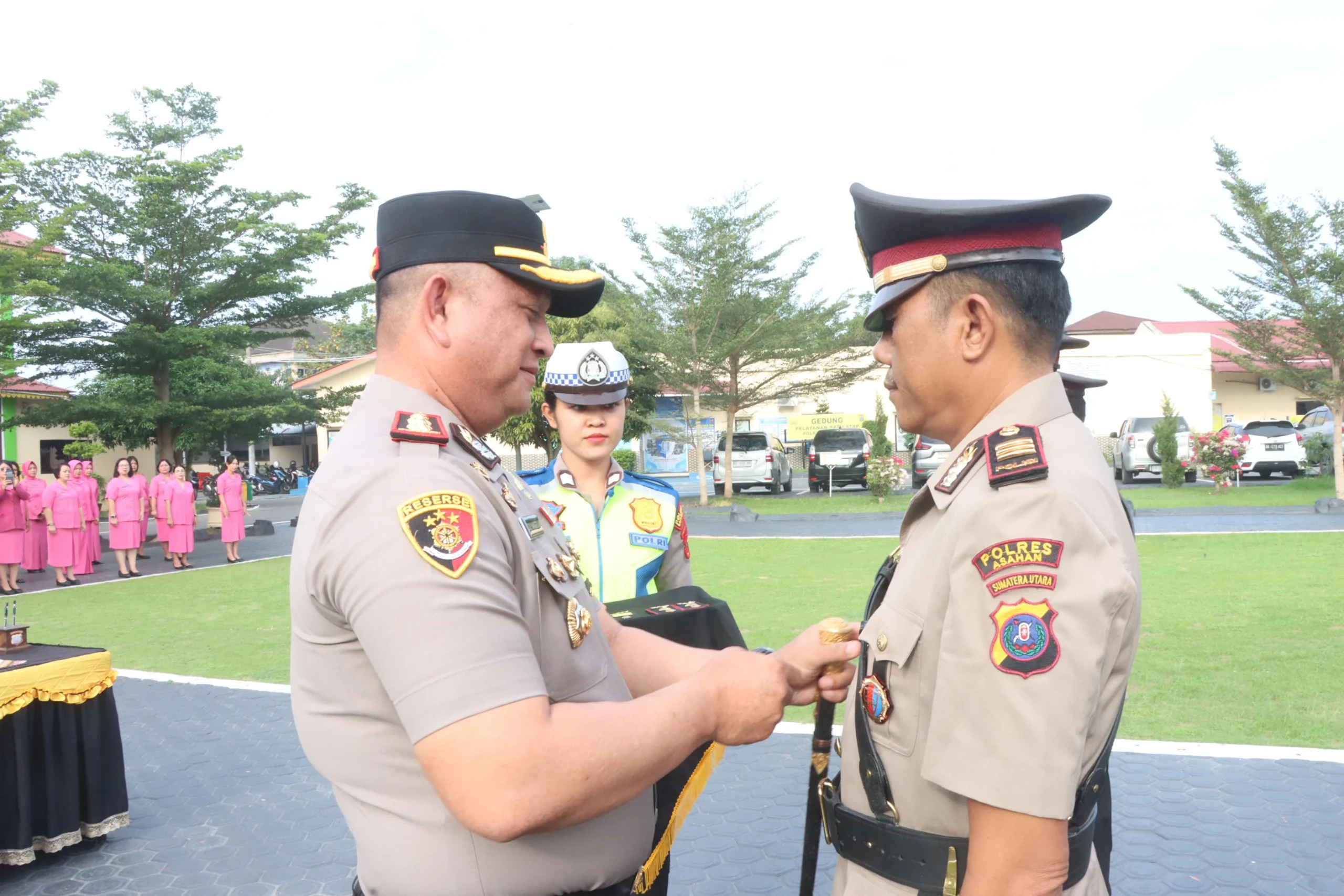 Kapolres Batu Bara Pimpin Upacara Sertijab Kapolsek Talawi dan Kasi Propam
