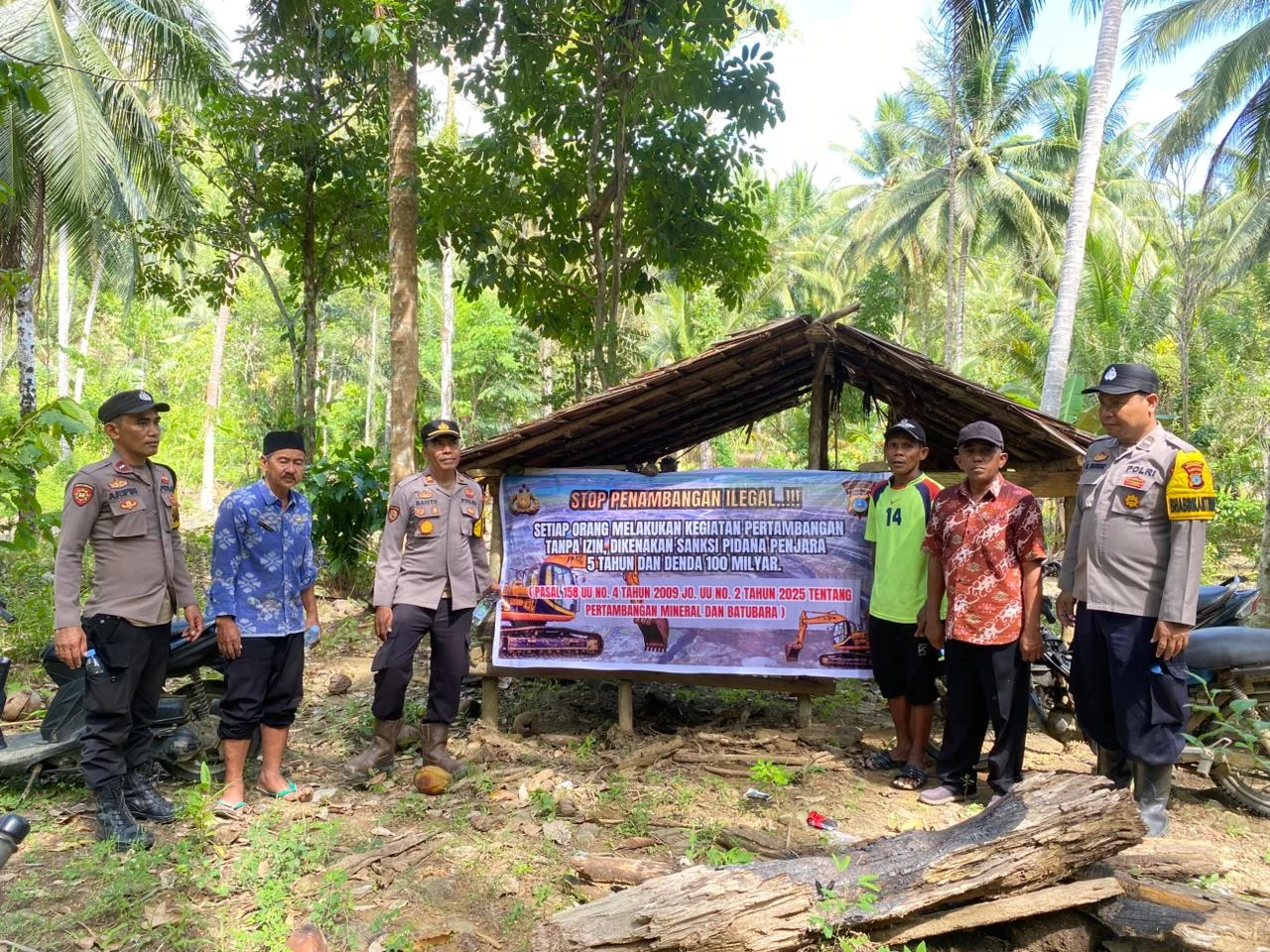Di samping itu dengan himbauan Stop Penambangan Ilegal, dan Setiap melakukan kegiatan pertambangan tanpa izin dikenakan sanksi Pidana penjara 5 Tahun dan Denda 100 Milyar, ( pasal 158 UU Nomor 3 Tahun 2020 Jo, UU Nomor 2 Tahun 2025 tentang perubahan atas UU nomor 4 Tahun 2009 tentang Pertambangan Meneral dan Batubara ).