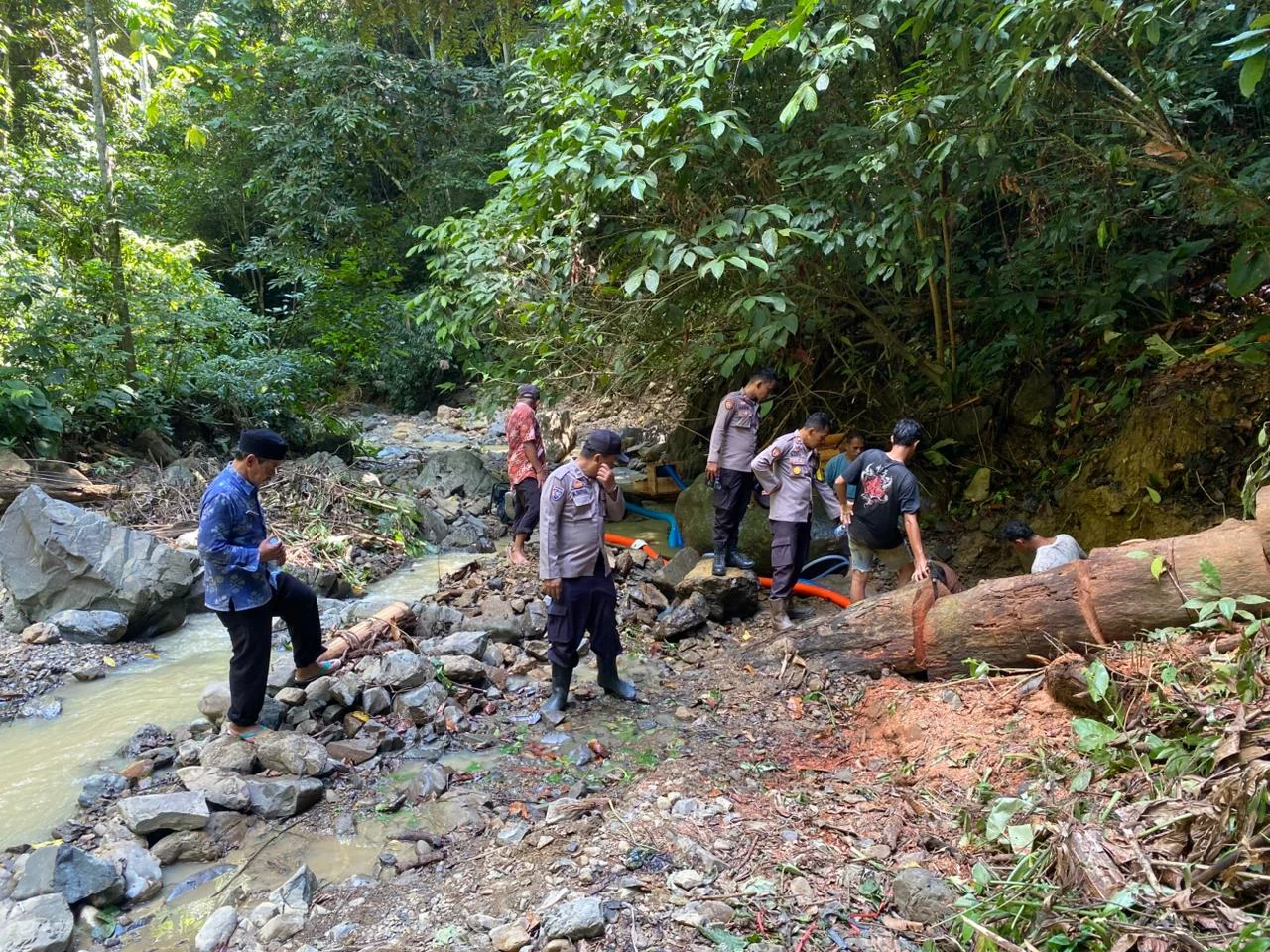 Selain itu juga , Kapolsek dan jajaran mendatangi titik – titik lokasi yang melakukan kegiatan tambang ilegal secara tradisional.