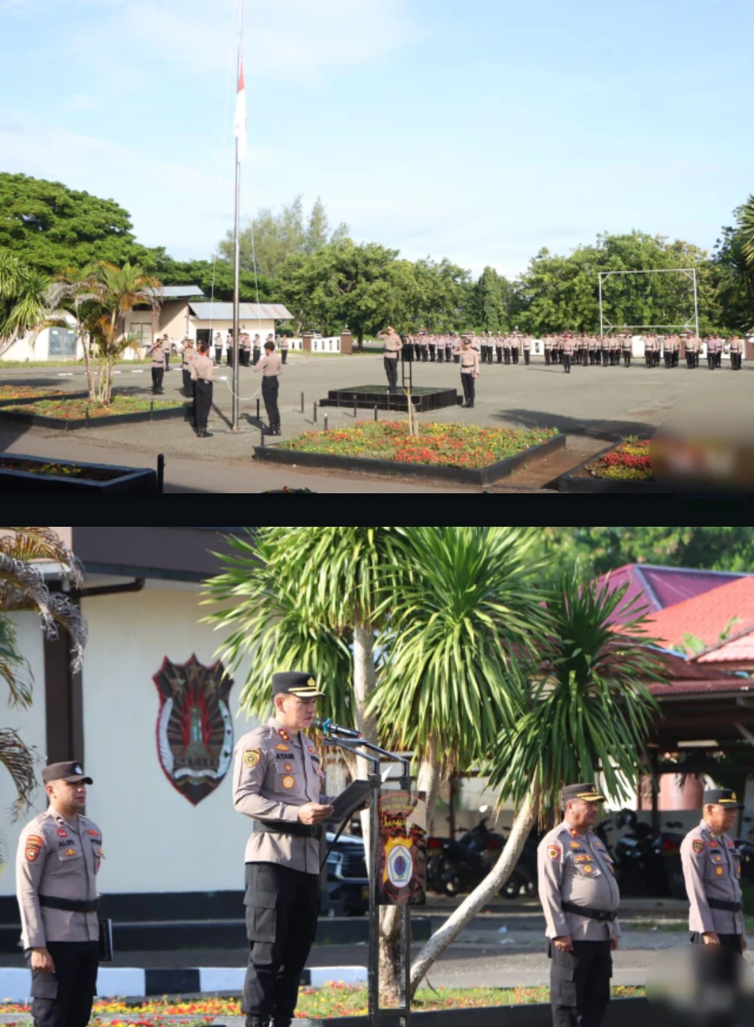Rangkaian kegiatan diawali dengan pengibaran bendera Merah Putih, dilanjutkan dengan menyanyikan Mars Polri, mengheningkan cipta, pembacaan Pancasila, serta pengucapan Tribrata dan Catur Prasetya.