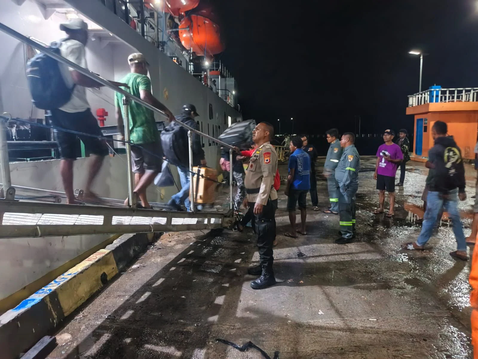 Kegiatan yang dipimpin Danpos KPPP Aipda Alexius Yohanes ini turut melibatkan sinergi dengan petugas Syahbandar Kelas II Saumlaki guna menjamin kelancaran proses debarkasi.