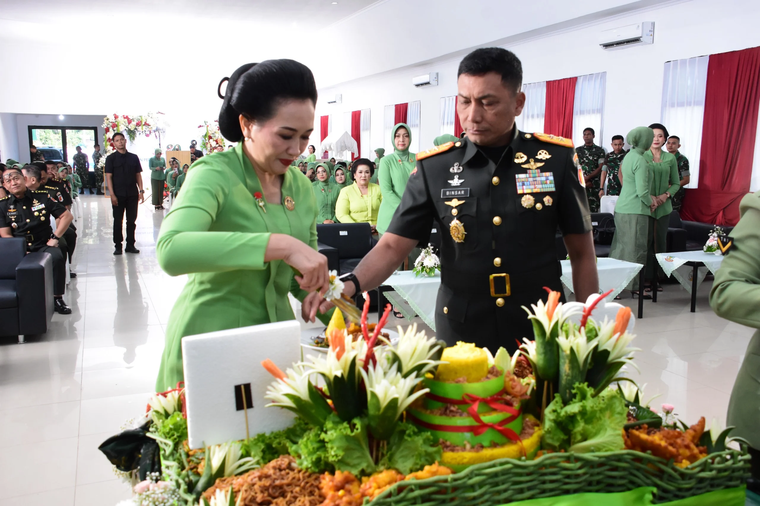 Acara berlangsung khidmat dan penuh kebersamaan, ditandai dengan pemotongan tumpeng, pemberian penghargaan kepada anggota Persit berprestasi, serta penyerahan bantuan sosial sebagai wujud kepedulian kepada sesama.