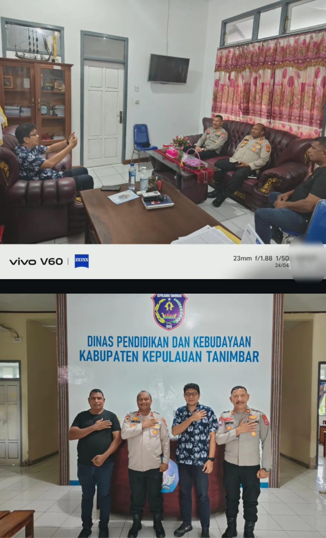 Koordinasi dilakukan Wakapolres Kepulauan Tanimbar, Wilhelmus B. Minanlarat, bersama Kasat Binmas dengan Kepala Dinas Pendidikan, Yongki Souisa, di ruang kerja Dinas Pendidikan.