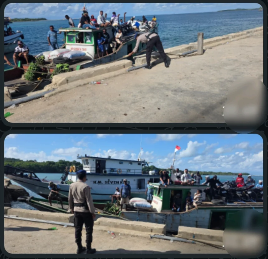 Selain patroli, personel Sat Polair juga melakukan pengamanan terhadap proses debarkasi kapal antar pulau KM Sumber Tani yang baru tiba dari Pelabuhan Adaut dengan membawa 35 penumpang.