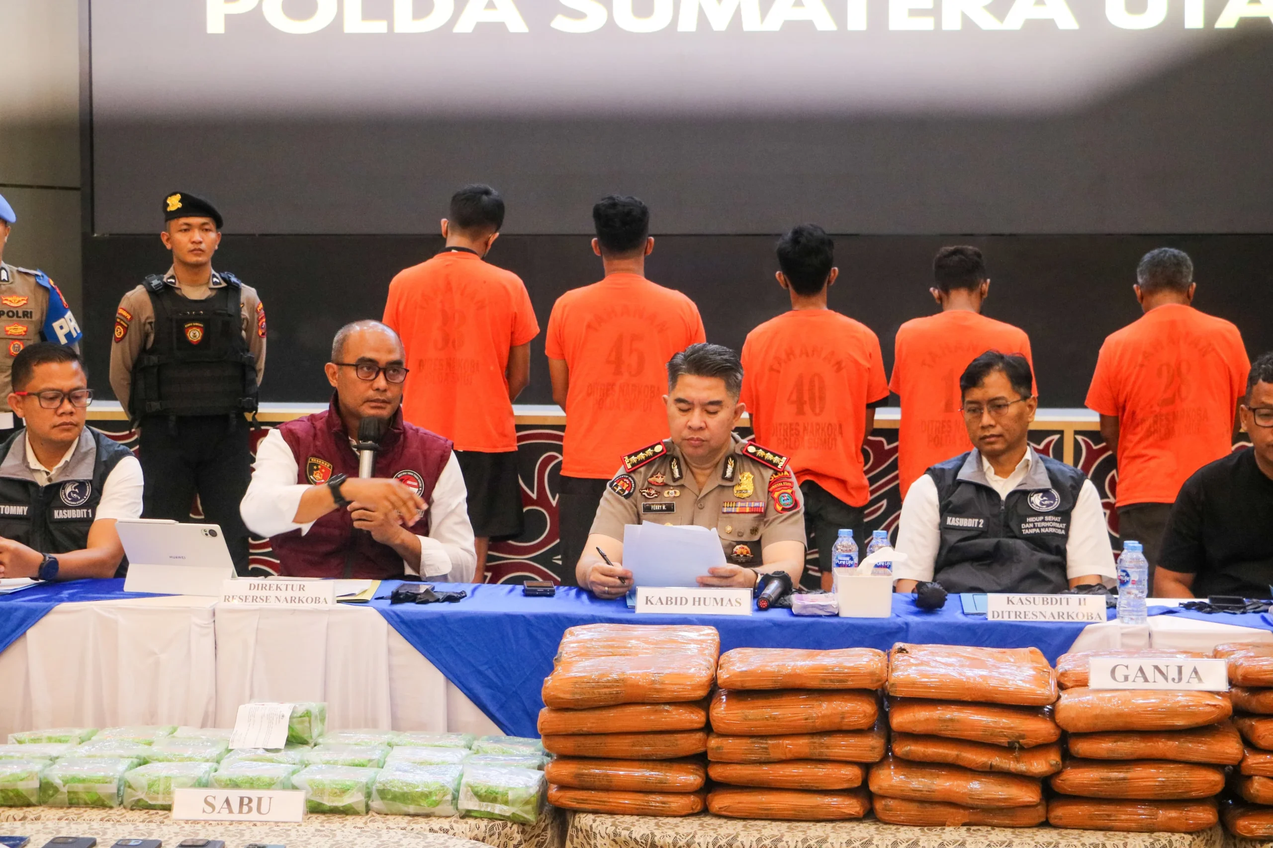 Dari pengungkapan tersebut, polisi berhasil menyita puluhan kilogram sabu serta ratusan kilogram ganja dari berbagai jaringan, termasuk jaringan internasional.