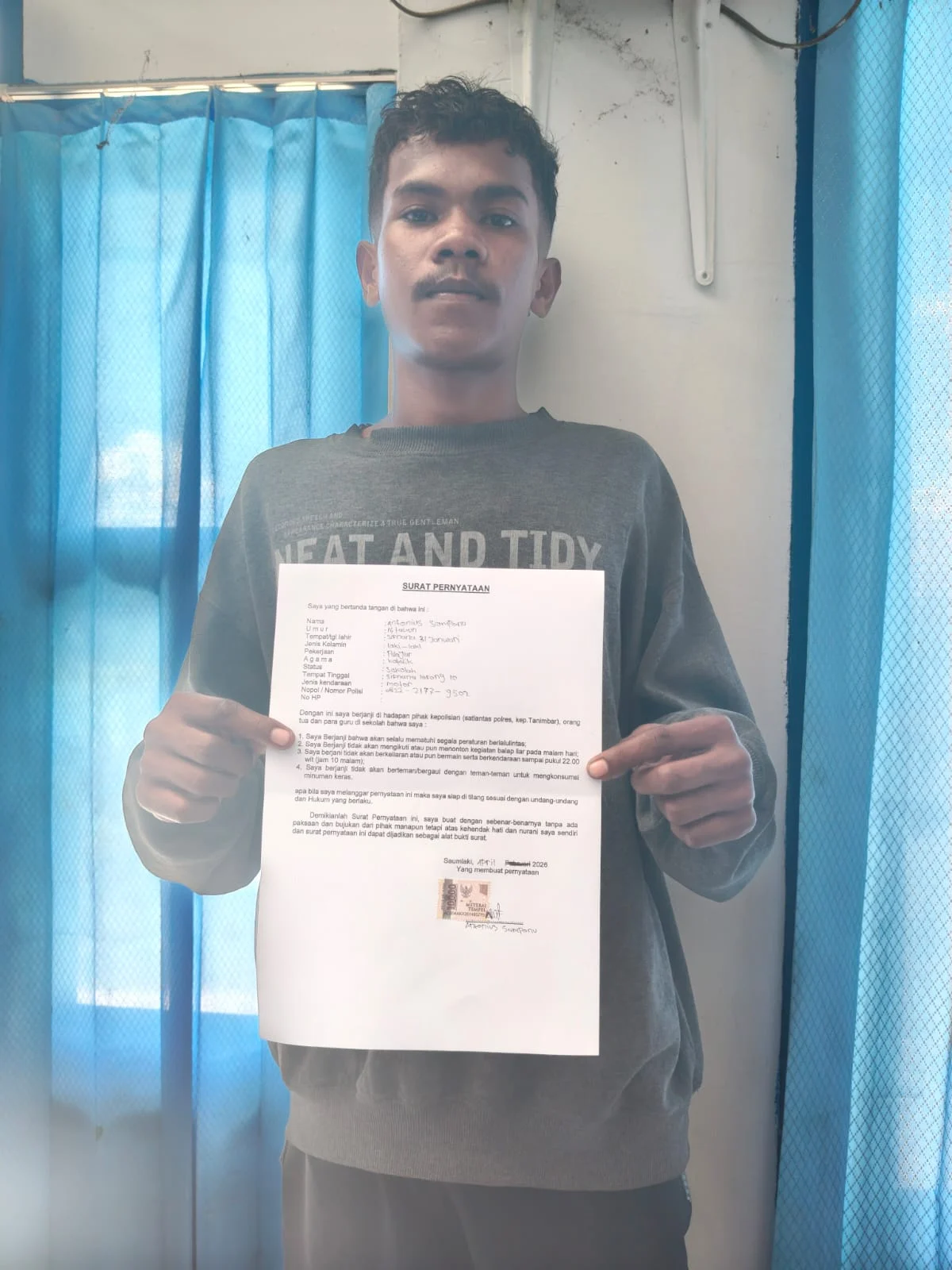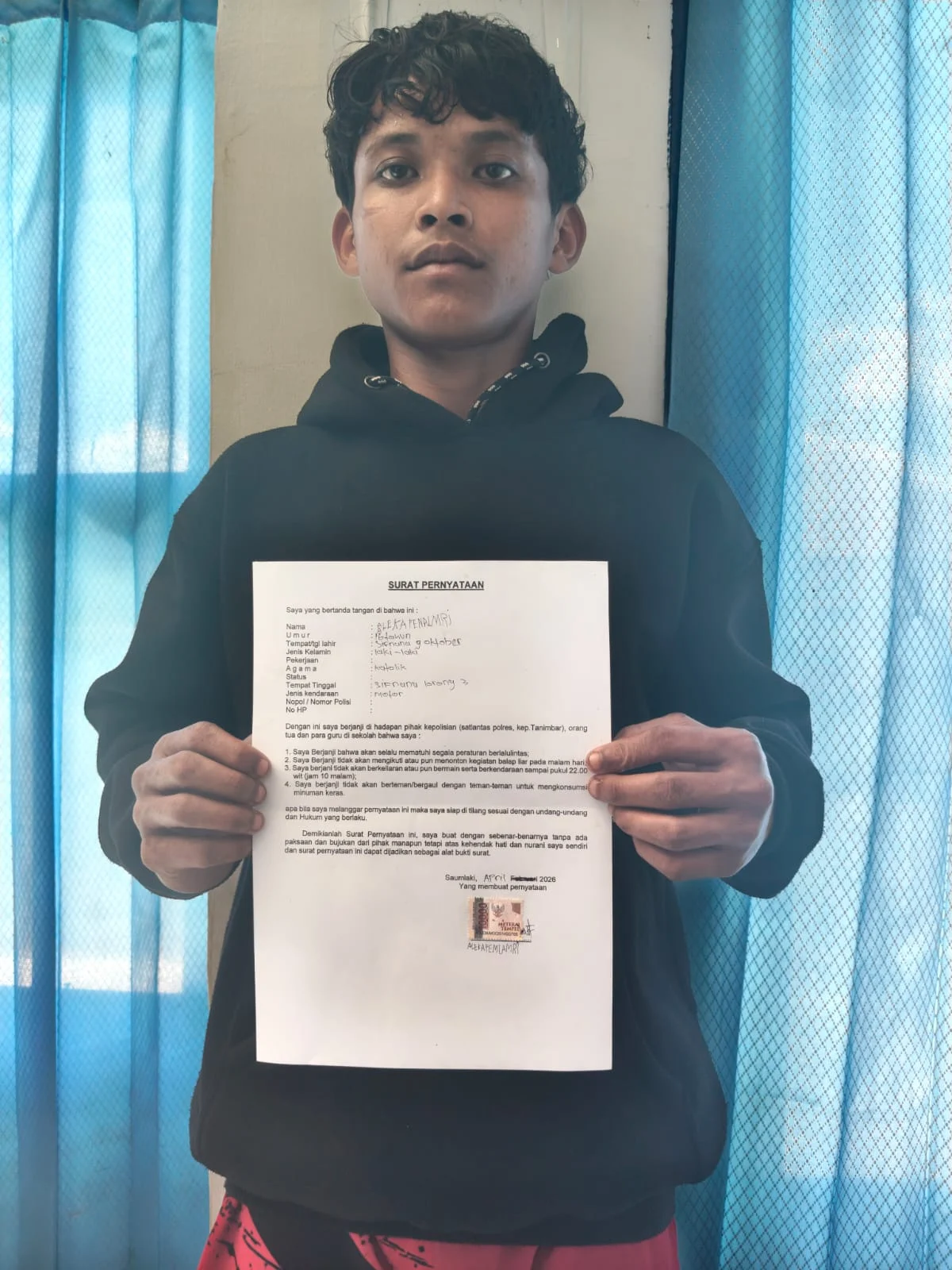 Sebagai bentuk komitmen, para remaja yang terlibat juga diminta membuat surat pernyataan untuk tidak mengulangi perbuatannya.