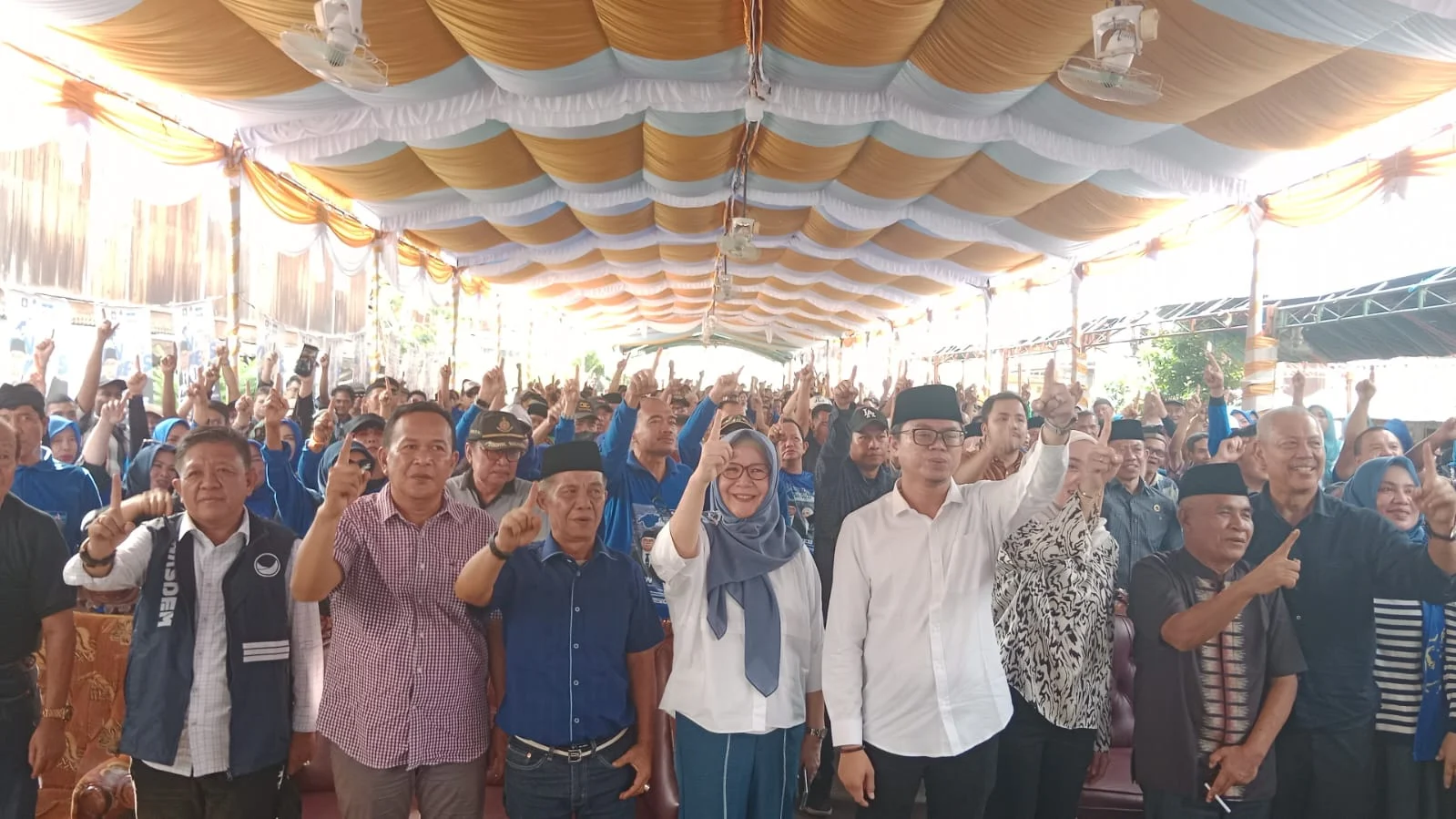 Tenda yang disiapkan panitia seolah tak mampu menampung massa yang hadir. Saking tumpah ruahnya, sebanyak 2.500 kursi yang disiapkan panitia, pun kurang.