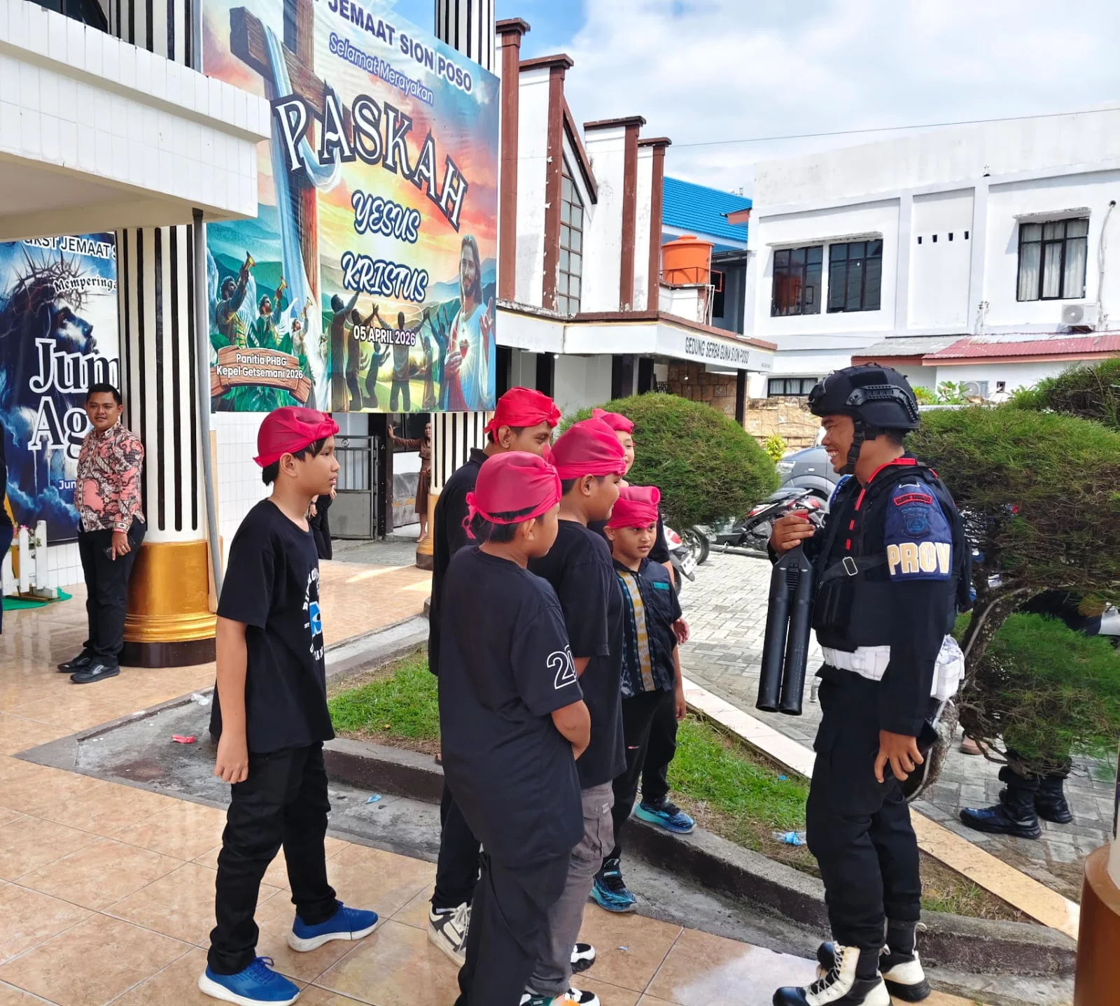 ( POSO ) – Info86News.com – Selasa.21/04/2026/-Guna memberikan rasa aman dan menjamin kekhidmatan umat Kristiani dalam menjalankan ibadah rutin, personel Kompi 1 Batalyon B Pelopor Satbrimob Polda Sulteng melaksanakan pengamanan di Gereja Kristen Sulawesi Tengah Jemaat Sion, Kecamatan Poso Kota, Kabupaten Poso, Minggu (19/04).