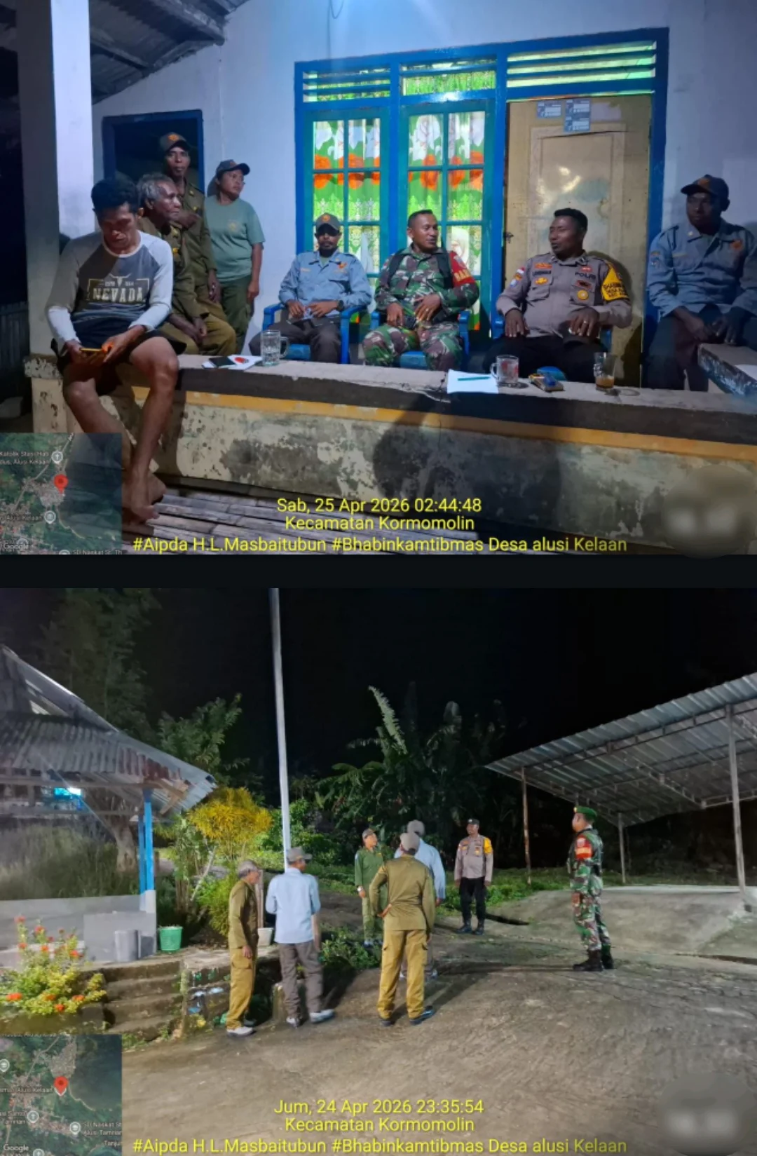 http://info86news.com | Kormomolin – Aparat gabungan TNI, Polri, dan Linmas melaksanakan patroli imbangan di Desa Alusi Kelaan, Kecamatan Kormomolin, Kabupaten Kepulauan Tanimbar, Sabtu (25/04/2026) dini hari, guna mengantisipasi potensi gangguan keamanan menjelang 25 April.