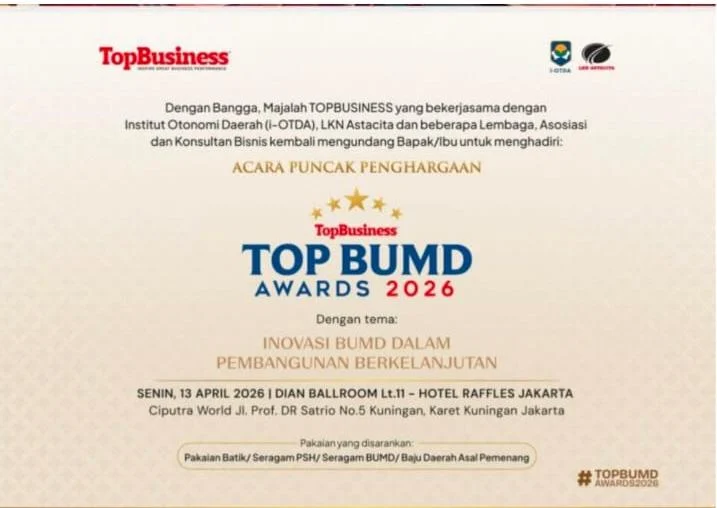 JAKARTA, Info86News.com – Majalah TopBusiness kembali menggelar ajang bergengsi TOP BUMD Awards 2026. Acara ini merupakan bentuk apresiasi tinggi terhadap kinerja dan inovasi Badan Usaha Milik Daerah (BUMD) di seluruh Indonesia.